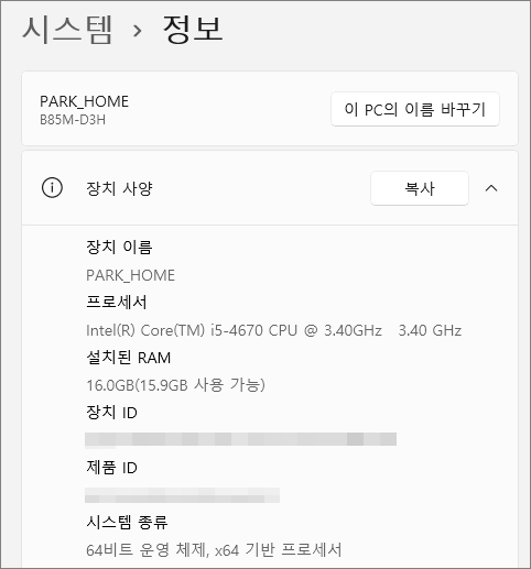 윈도우 11 내 PC 사양 확인하는 간단 방법