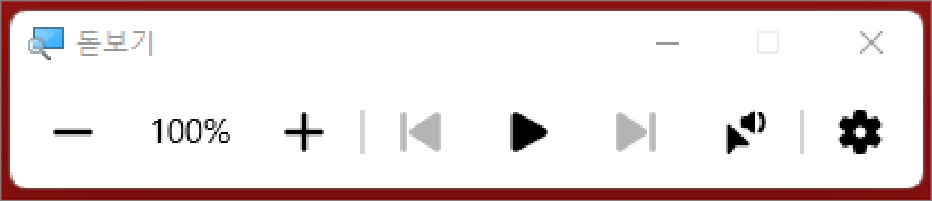 이렇게 돋보기 창이 열리는데요. 사용 방법은 왼쪽에 + 버튼이나 - 버튼을 클릭하면서 화면 확대를 할 수 있어요. 그리고 텍스트를 음성으로 읽어주는 기능도 사용할 수 있는데요. 가운데 재생 버튼을 클릭하면 텍스트에 커서가 있는 위치부터 읽어주고 오른쪽에 마우스 포인터와 스피커 아이콘이 있는 버튼을 클릭하면 사용자가 직접 선택하는 위치부터 텍스트 읽기를 해줍니다.